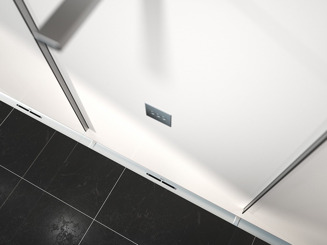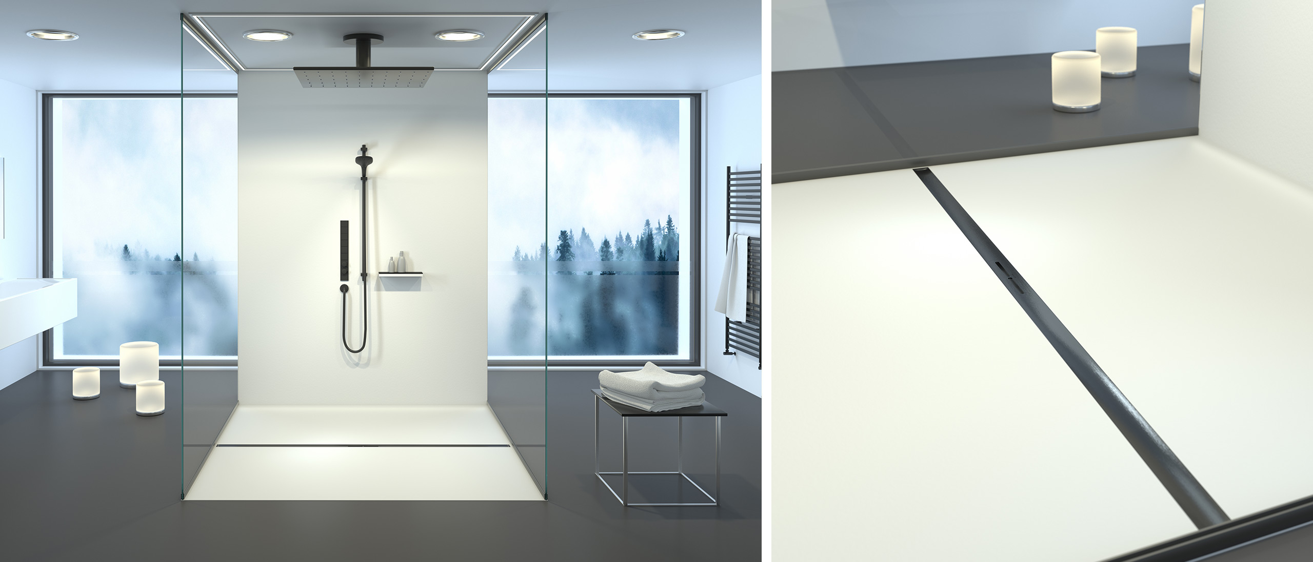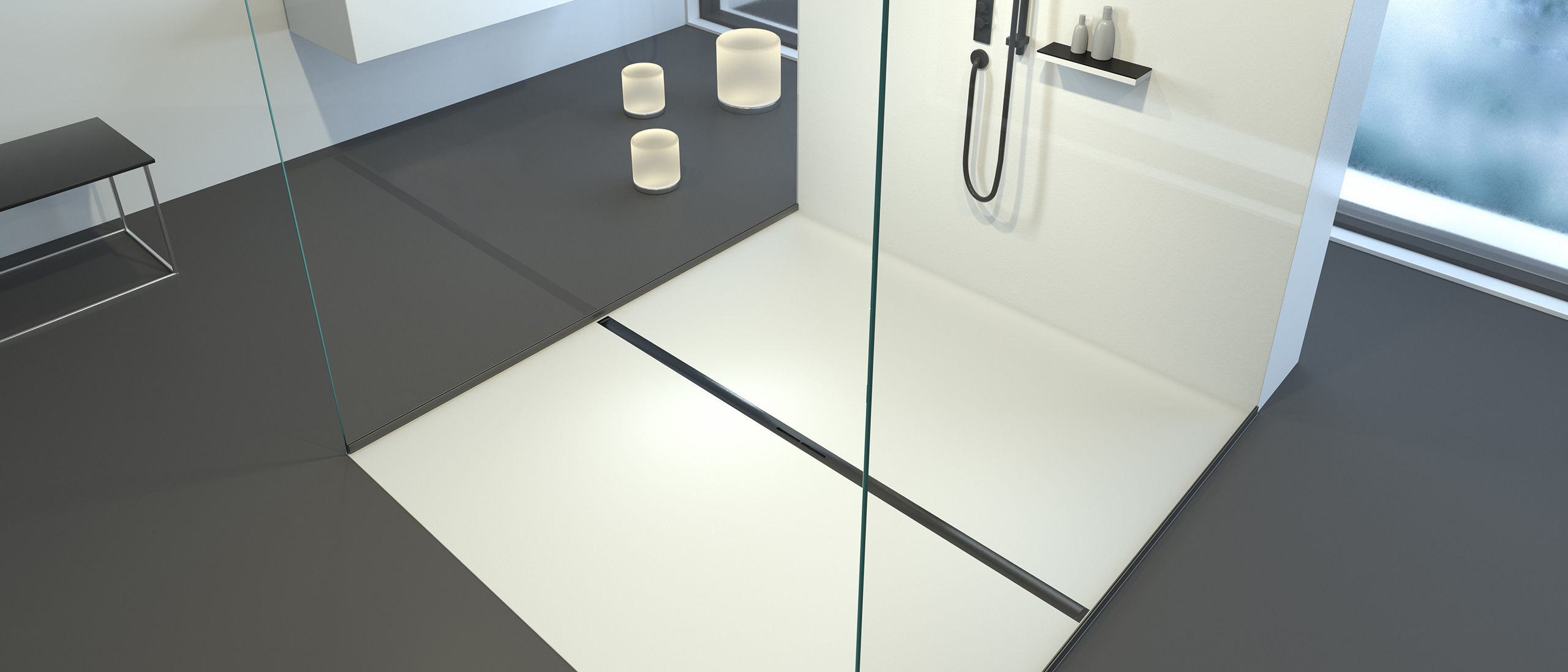 Bei der Badezimmerplanung können Sie ab sofort auch um die Ecke denken und ganz besondere Ideen verwirklichen. Mit den Verbindungsstücken und dem praktischen Stecksystem lassen sich mehrere Duschrinnen einfach aneinanderreihen – in gerader Linie und sogar um Ecken im 30°-, 45°- und 90°-Winkel.