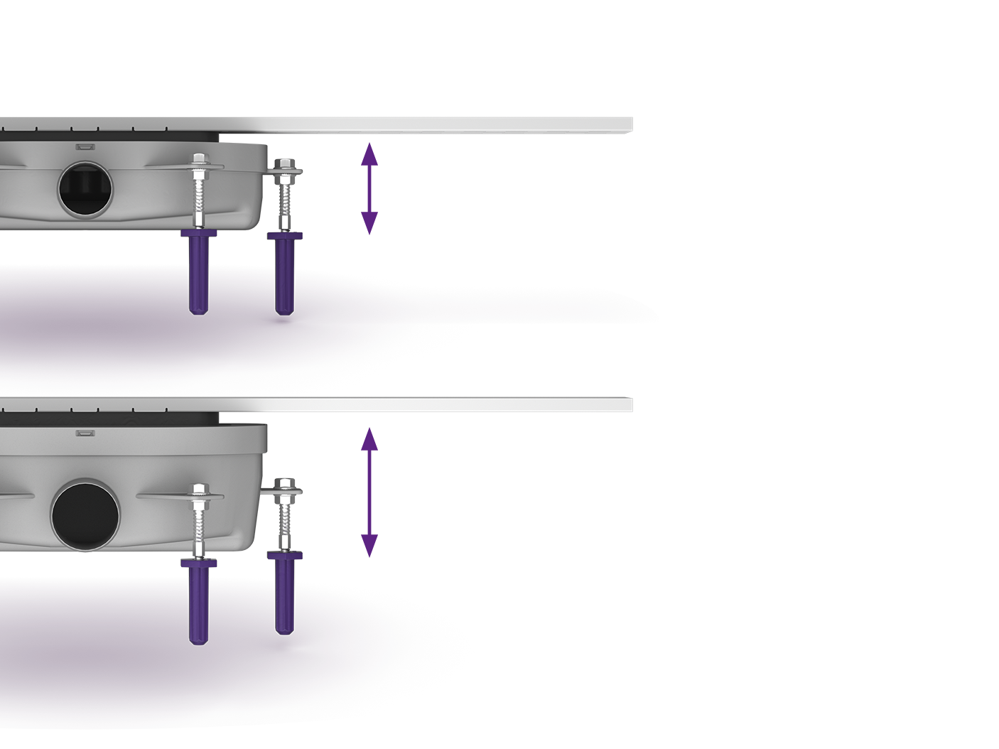 Mit ihrer geringen Einbauhöhe von nur 60 mm ist die Linearis Infinity unsere flachste Duschrinne – und bietet trotzdem eine hohe Abflussleistung von bis zu 0,5 l/s. Die Variante mit einer Einbauhöhe von 90 mm hat sogar eine Ablaufleistung von bis zu 0,8 l/s.
