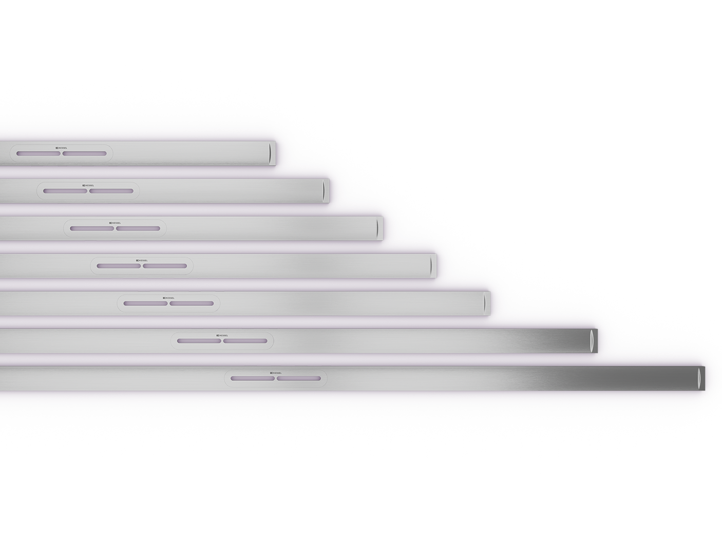 Wie ungewöhnlich Ihre Entwürfe oder die räumlichen Gegebenheiten auch sind, mit der Linearis Infinity finden Sie immer die passende Lösung. Sie ist in sieben Längen von 800 bis 1.600 mm erhältlich und unendlich erweiterbar.