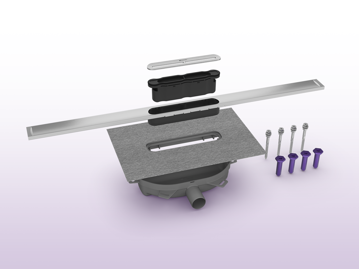 Mit der Linearis Infinity steht der Montage nichts im Wege. Denn die All-in-One-Box beinhaltet nicht nur sämtliche Teile der Duschrinne, sondern auch praktisches Zubehör, das den Einbau erleichtert.